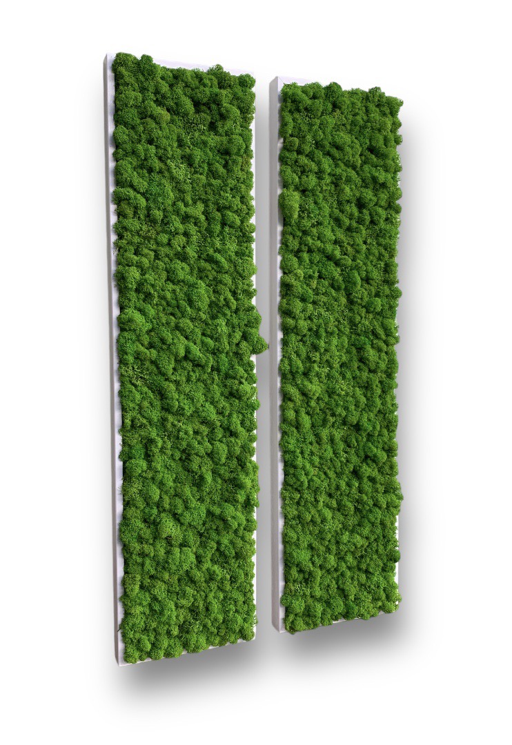 Machový 2-obraz, z lišajníkového machu. Drevený farbený rám v odtieňoch Biela, Čierna, Hnedá, Šedá alebo v lakoch svetlý Dub, Orech alebo Tmavý palisander.
